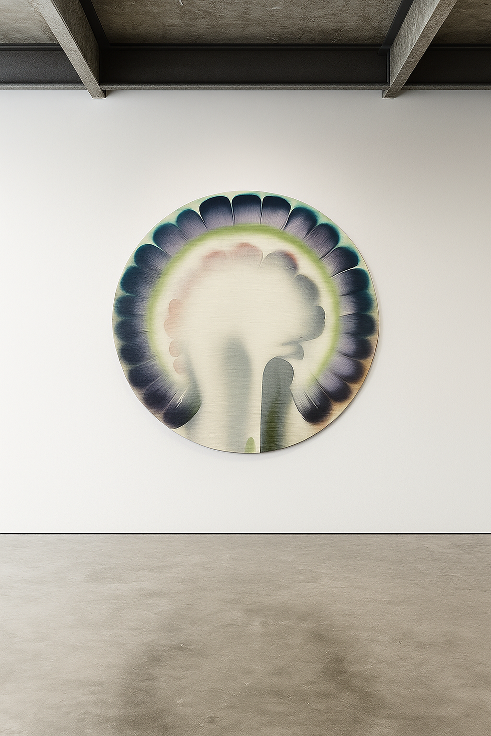 Printed on hand-loomed silk, each work captures light as a living gesture — expanding, dissolving, and pulsing across the surface. Color hovers between vapor and presence, creating meditative halos that feel both intimate and cosmic.